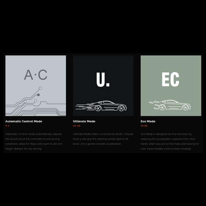 - It includes an automatic control function that changes the level of throttle performance based on the pedal pressure.