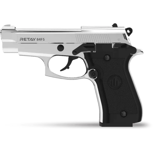 Furthermore, the Retay 84FS features a semi-automatic action and a double action trigger mechanism, which together contribute to a smooth and responsive shooting experience. Consequently, this ensures that the Retay 84FS retains its polished look even after extensive use. Moreover, the 15+1 round magazine capacity of the Retay 84FS further enhances its practicality. Initially, its chrome finish provides a visually striking appearance, enhancing its appeal for collectors and enthusiasts. Consequently, users can handle the Retay 84FS with increased confidence, knowing that safety is a top priority.